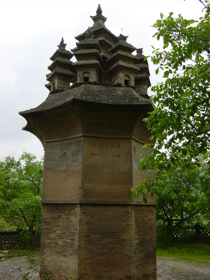 九顶塔位于柳埠镇东南灵鹫山西南麓,旧有九塔寺,久废,唯剩九顶塔。塔建于唐,单层八角,实体塔心,塔体呈凹形曲线,结构奇特。八角各隅之上筑三层小塔,中心部位筑以同类高型塔,聚为九顶三层小塔,故名九顶塔。造型华美,设计精巧,为国内罕见。