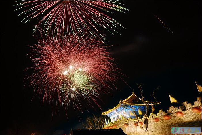 元宵之夜,看完广场的烟花,又跑到岱庙北门。御座宾馆放焰火。。。