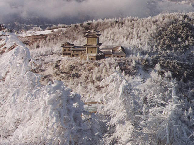 霧淞和雨淞是泰山奇特的自然景觀。霧淞似霜非霜,似冰非冰,迎風怒放,千姿百態。使松枝、樹叢結滿了毛絨絨的冰掛,象一株株巨大的白珊瑚,殿閣披上了柔軟的輕紗,大地舖展開潔白的氈毯。雨淞則使巖石、大地、房頂、林木都結滿了晶瑩剔透的冰層,讓萬物驟然間凝聚成冰的世界。
