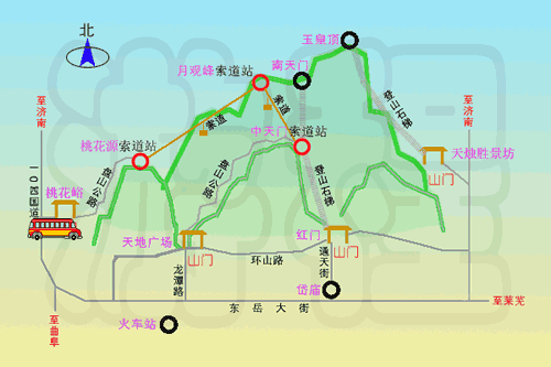 泰山火车站站前广场有16路专线旅游公交车往返,但下午5时便停止运行,请游客注意。
