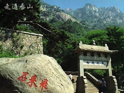 五大夫松 位于云步桥北侧的五松亭旁。盘路至此,有石坊赫然而立,额题“五大夫松”。坊西有古松,又称“秦松”,“秦松挺秀”为泰安八景之一。据《史记》载,秦始皇登封泰山,中途遇雨,避于大树之下,因树护驾有功,遂封该树为“五大夫”爵位。